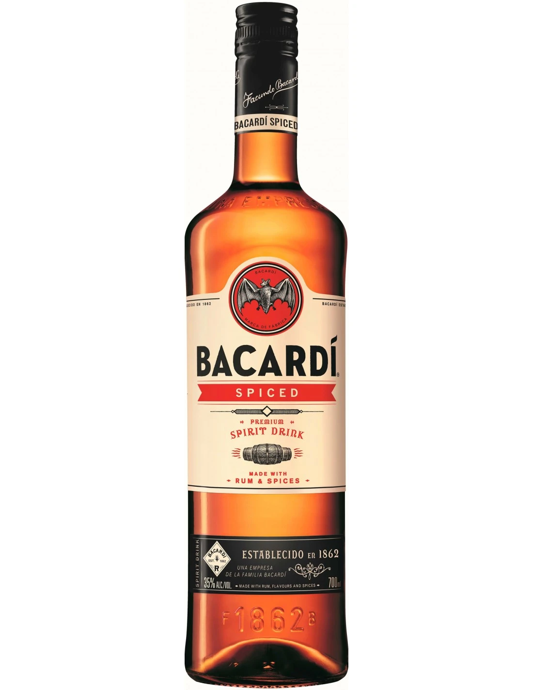 Bacardí Spiced tiene notas iniciales de deliciosa vainilla cremosa, miel amaderada y sutil a través de la paleta media, y un final natural de canela y nuez moscada.