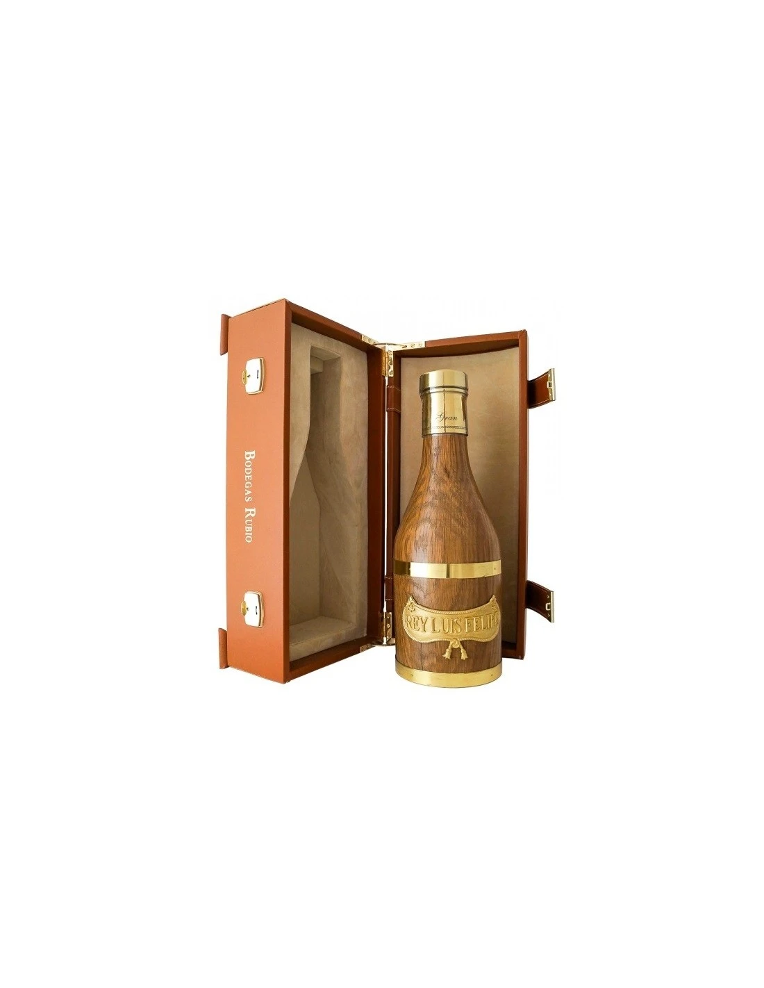 El Brandy Gran Reserva Rey Luis Felipe es tan selecto que sólo se elaboran 300 unidades numeradas, además, un contenido tan selecto debe presentar un envase acorde, de ahí que la botella de cristal se encuentre forrada de madera de roble americano tallada a mano y en un estuche de piel.
