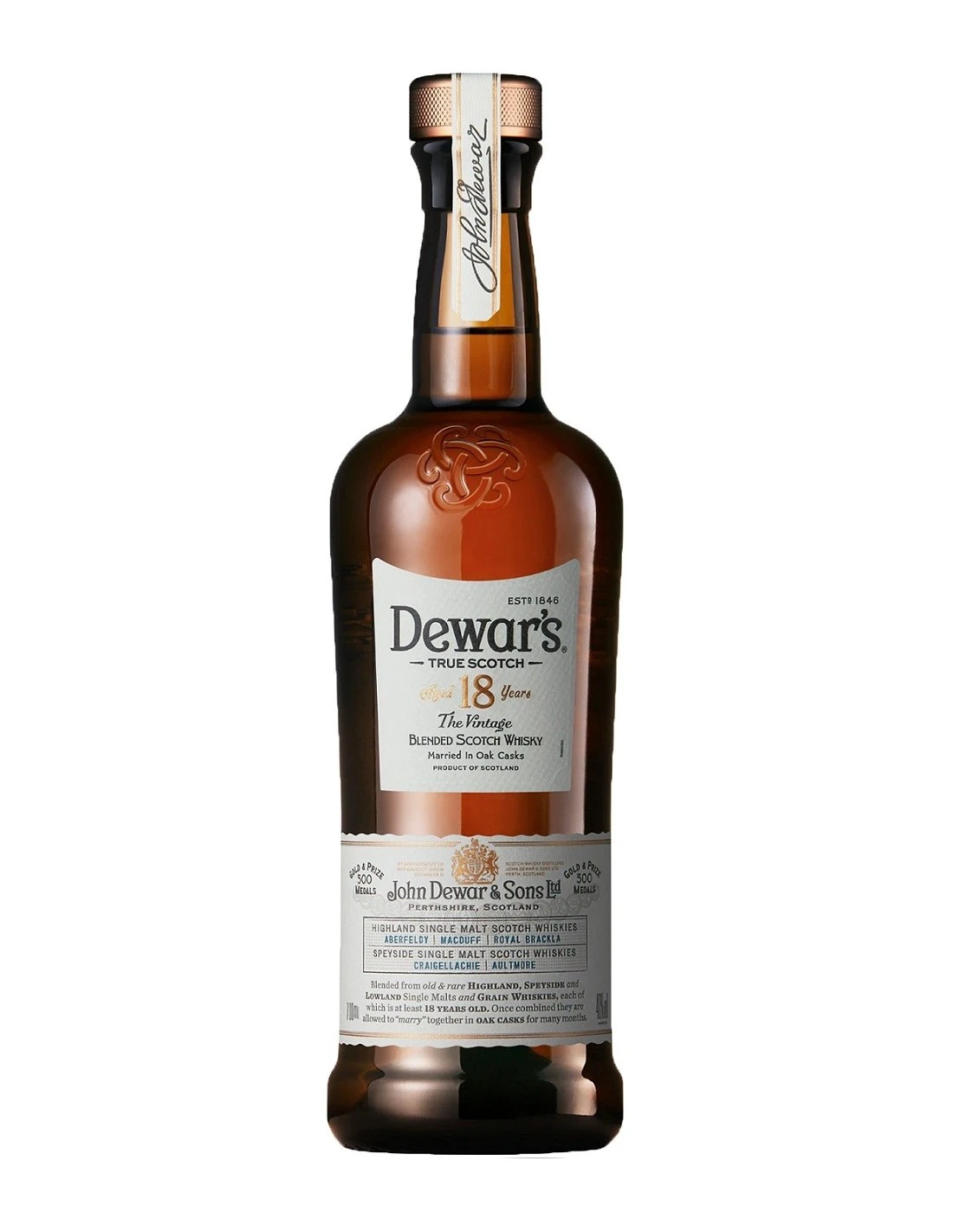 Dewar’s 18 Years es un Whisky maduro, de color ámbar dorado, con notas de sirope de caramelo, almendras y mazapán y una delicada traza de vainilla que complementa su aroma perfectamente balanceado. El gran cuerpo de Dewar’s 18 persiste en un final largo y levemente seco.