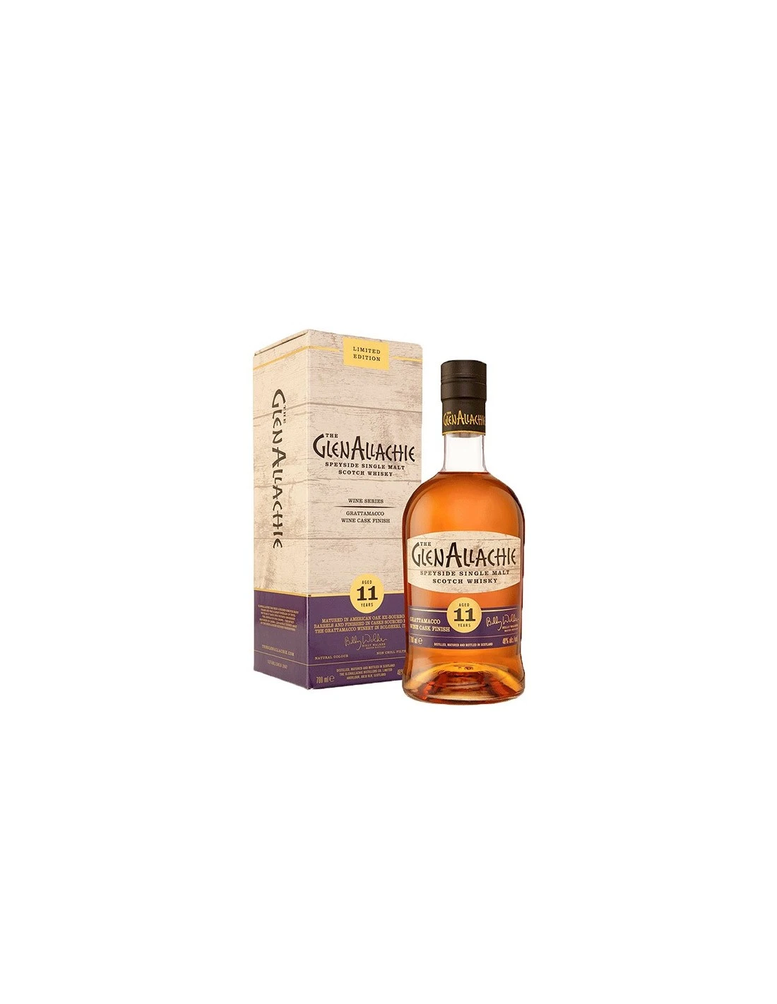 Este single malt pertenece a la gama Wine Caks Finish de la prestigiosa destilería The GlenAllachie, que destaca por una crianza en barricas de roble americano (que almaceranon bourbon) seguida de otra de dos años en barricas de vino seleccionadas por el maestro destilador Billy Walker procedentes de la bodega Grattamacco, en la zona toscana de Bolgheri. Un whisky que destaca por sus notas de caramelo, frutas de hueso y cáscara de naranja.