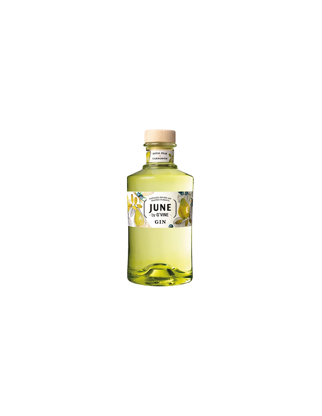 Destilada, infusionada y producida en Francia, bajo el sello de G’Vine, sello de calidad. June es afrutada, dulce, suave y con un sabor de fácil interpretación: Pera & Frutas de verano.